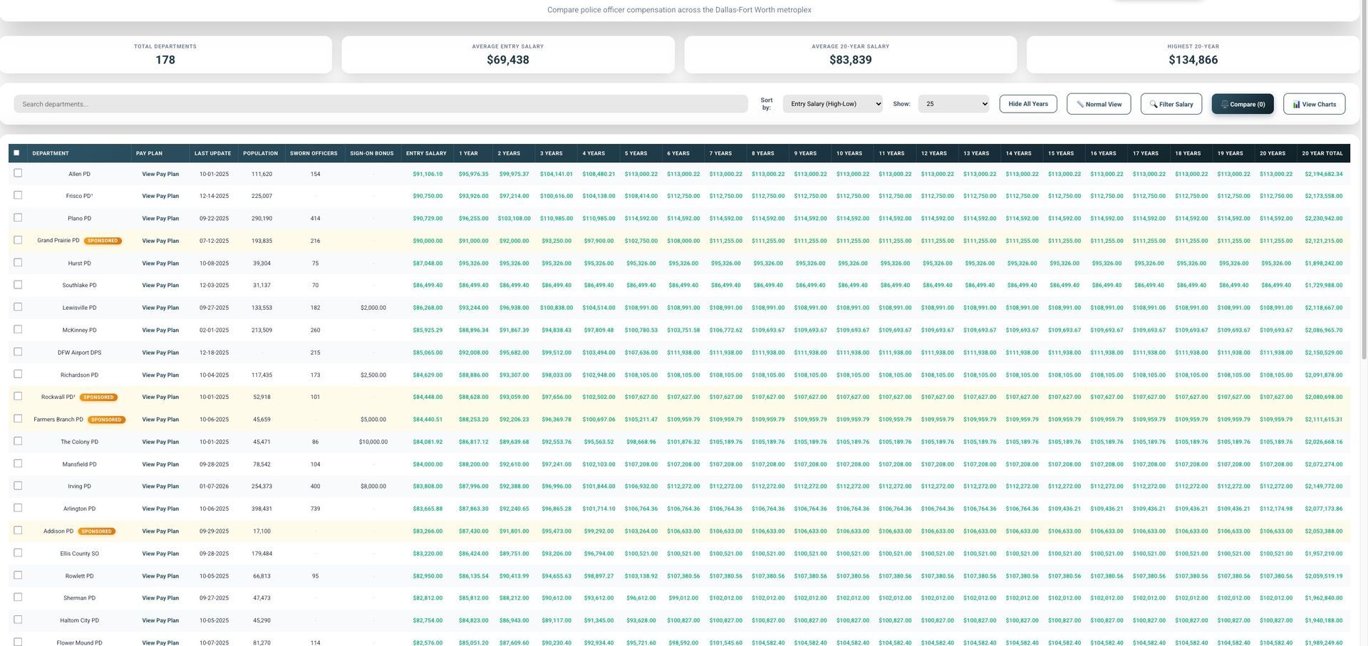 November 23rd, 2025 The video highlights the top 20 highest-paying police departments in the Dallas–Fort Worth area, showing how their salaries evolve over time through each step plan. As the years progress, each department races across the screen, giving you a clear view of long-term trends and just how competitive the market has become.